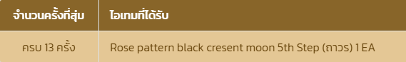 🔸ไอเทมการันตี ครั้งที่ 13 จะได้รับแทนไอเทมที่ได้จากการสุ่ม