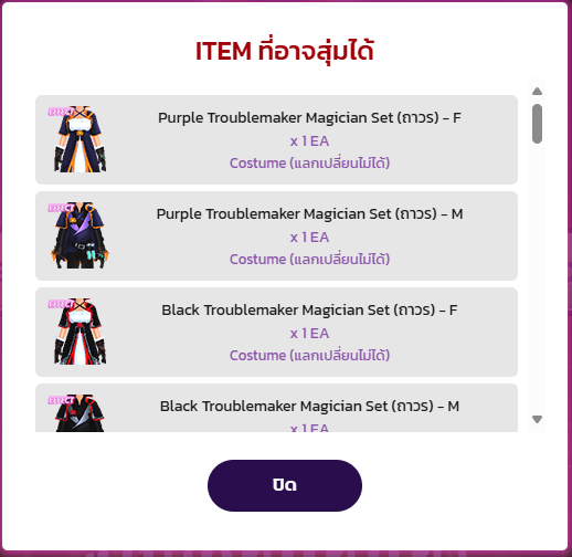 🔸ไอเทมที่ได้รับจากการสุ่ม จะไม่ได้ซ้ำ