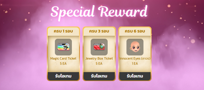 Special Reward! รับเพิ่มอีกหนึ่งต่อ หากสามารถเดินกระดานได้ครบ 1 รอบ 2 รอบ และ 6 รอบ รับไปเลยไอเทมสุดพิเศษ ~