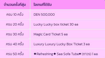 - สุ่มครบ 20 ครั้ง รับไปเลย Lucky box ticket x30 ea