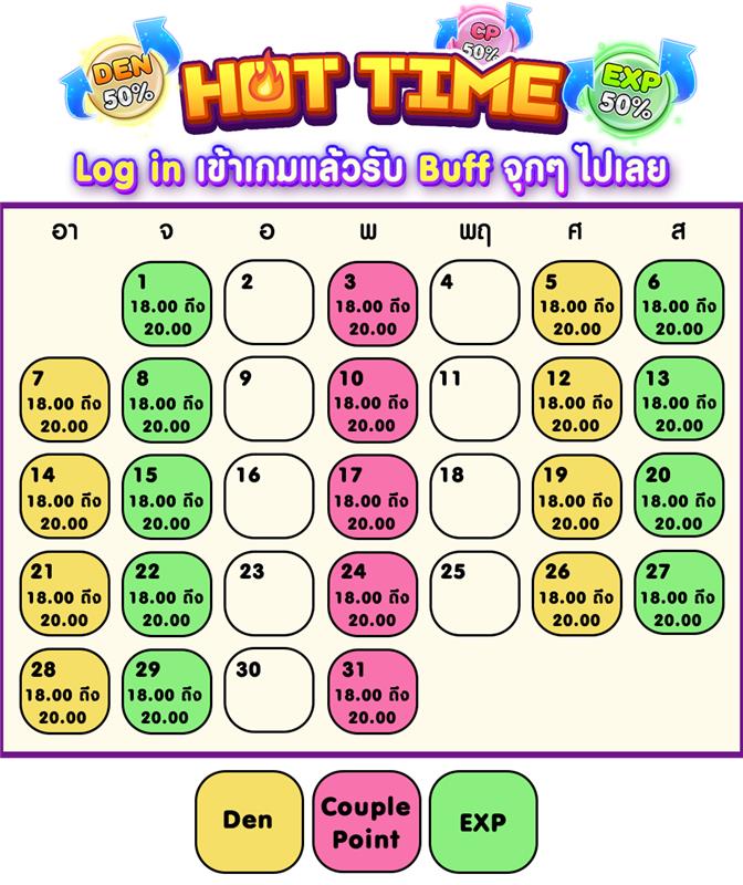 🔸Buff ที่ได้รับจะแสดงผลอัตโนมัติเมื่อเข้าเล่นในช่วงวันและเวลาที่กำหนด