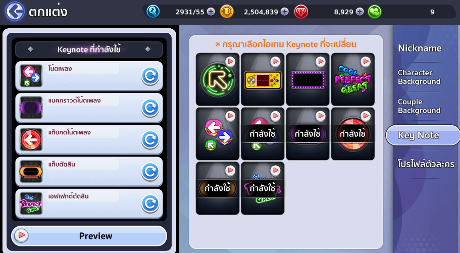 🔸สามรถเก็บสะสม Decoration ในร้านค้า ทั้งหมดไว้ในโหมดนี้ได้แล้ว ไม่ว่าจะเป็น Nick Name , Character  Background , Key Note และ โปรไฟล์ตัวละคร