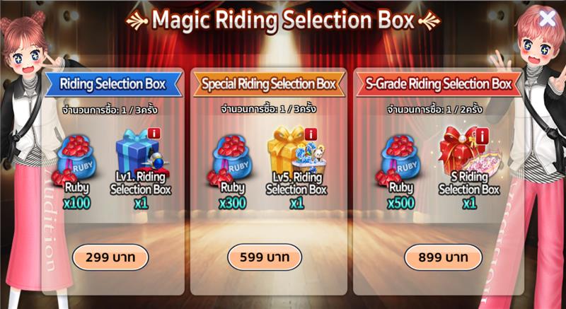 🔸เมื่อเลือกไอเทมพาหนะถาวรซ้ำจากกล่อง Riding Selection Box จะได้รับเป็น Magic Card Ticket x3 EA