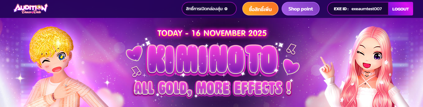 🔸EXE ID จะต้องเป็นไอดีเดียวกันกับที่ใช้ Log in เข้าเล่นเกม เนื่องจากไอเทมจากการสุ่มจะถูกส่งเข้าไปยังจดหมายภายในเกม