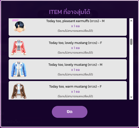 🔸ไอเทมที่ได้จะเป็นไอเทมตามเพศของตัวละครเท่านั้น