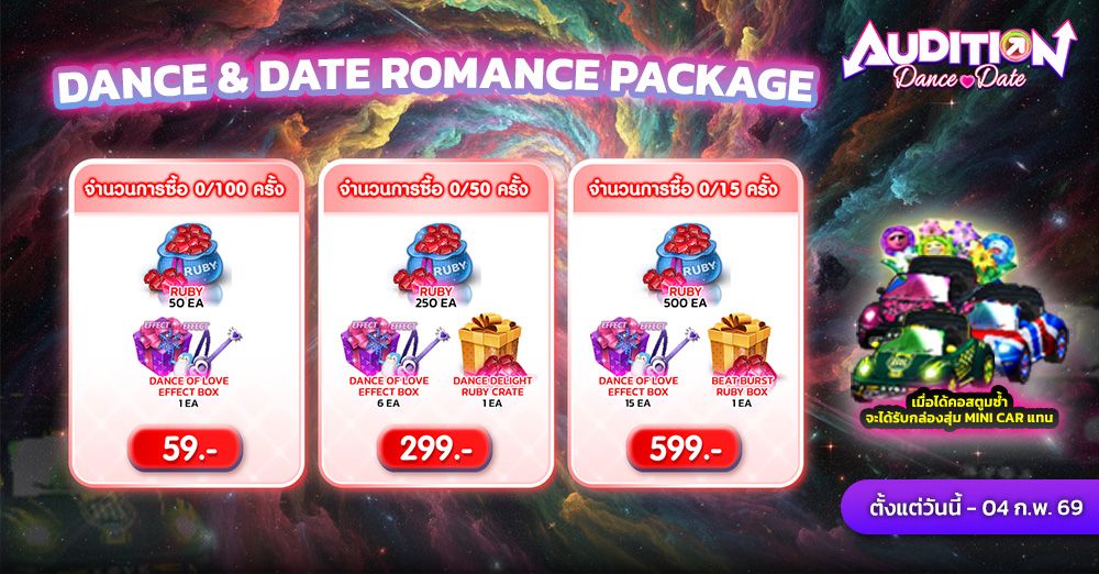 - เติมเงินครบทุกๆ 1,000 บาท รับไปเลย Dance Delight Ruby Crate x 5ea