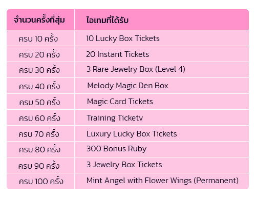 🔸การันตีไอเทมเมื่อสุ่มครบทุก 10 ครั้ง (10, 20, 30, 40,....100)